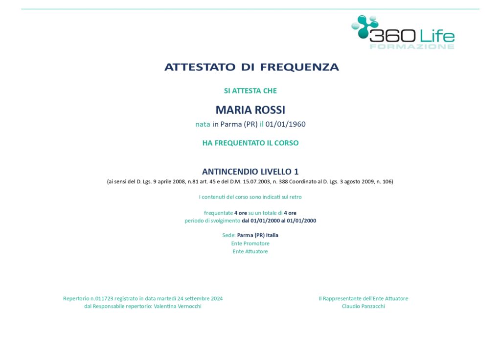 L’attestato ha una validità di 5 anni, trascorsi i quali dovrai effettuare il corso di aggiornamento per mantenere la formazione conforme alle normative vigenti e garantire la continua sicurezza all’interno dell’ambiente di lavoro.